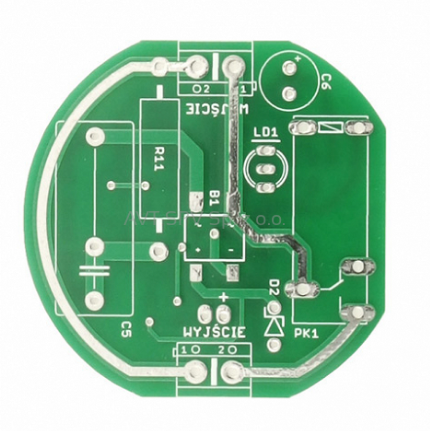 Półprzewodniki: 1N4148 (SMD MMELF), DF08S (SMD), BC847 (SMD), BC857 (SMD), 4017 (SMD), LED 3mm lub 5mm dwukolorowa, dioda Zenera 12V