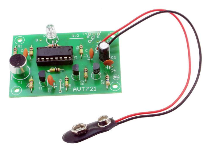 Ten wyjątkowo atrakcyjny i prosty projekt wprawi w zdumienie kolegów i rodzinę. Układ reaguje na głośne klaśnięcie. Wykazuje przy tym zadziwiająco małą czułość na dźwięki typowe dla otoczenia (mowa, spokojna muzyka). Każde kolejne wyzwolenie zmienia stan na przeciwny. Sygnalizuje to dwukolorowa dioda świecąca LED. Po uzupełnieniu o układ wykonawczy np. przekaźnik, kit AVT721 nadaje się doskonale do zdalnego sterowania lampką nocną, żaluzjami itp. Układ posiada obwód zerowania po włączeniu zasilania.
