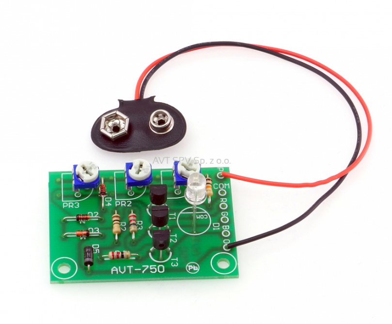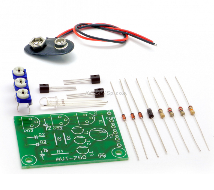 Kit zawiera nowoczesną trzykolorowa diodę LED RGB o dużej jasności. Trzy potencjometry niezależnie regulują jasność świecenia trzech struktur i pozwalają uzyskać dowolną jasność i barwę emitowanego światła.
