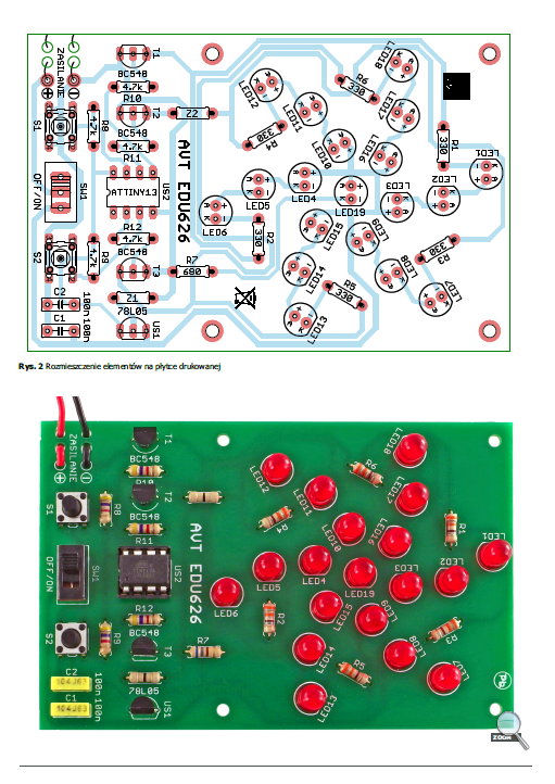 W zestawie płytka drukowana, komplet elementów oraz dokumentacja (wymaga lutowania).