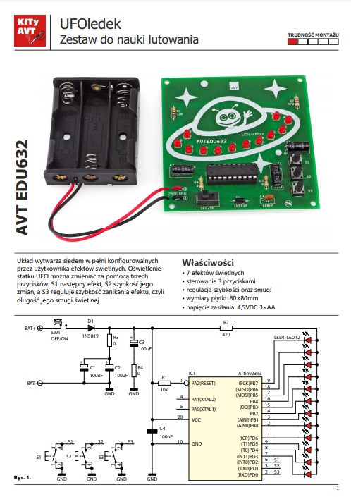 VAVTEDU632 UFOledek - 7 efektów świetlnych (Zestaw do nauki lutowania) AVTEDU632