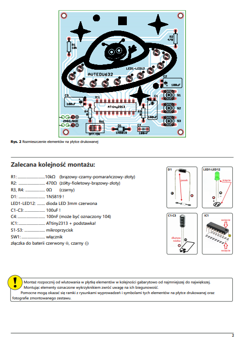 W zestawie płytka drukowana, komplet elementów oraz dokumentacja (wymaga lutowania).