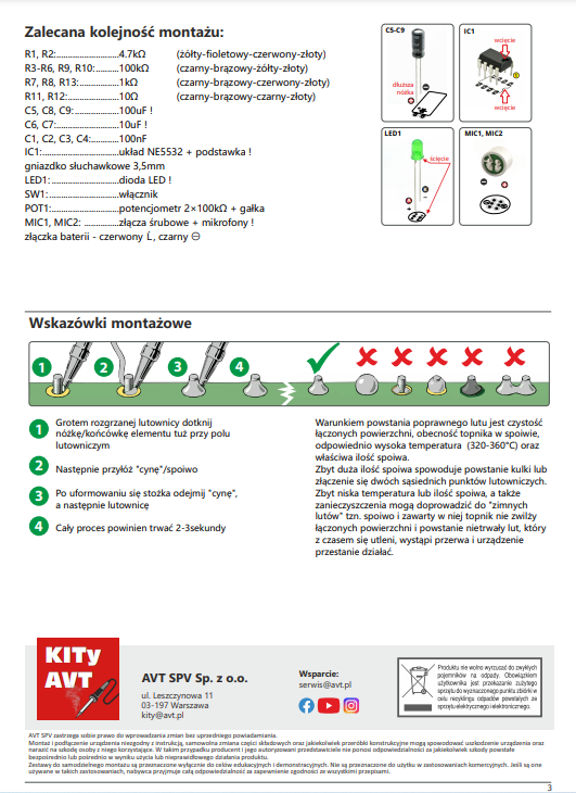 Kompletny zestaw do samodzielnego montażu do nauki lutowania (wymaga lutowania)
