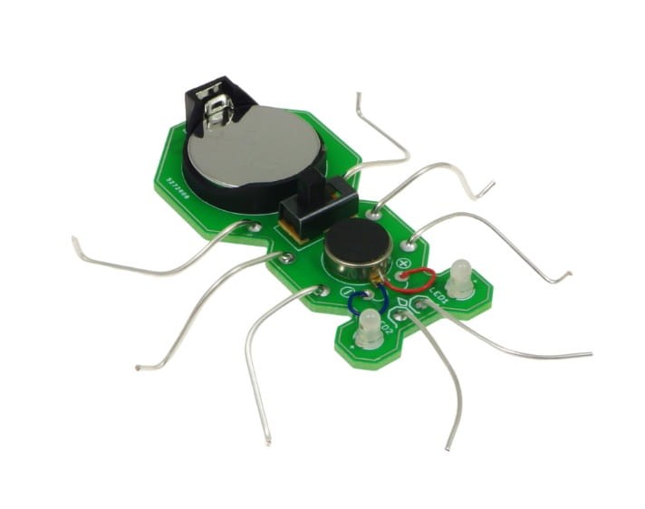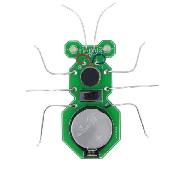 Ten robaczek edukacyjny napędzany jest wibracjami z miniaturowego silnika oraz posiada świecące oczy z diod LED, które migają po uruchomieniu. Dzięki temu ożywa na biurku i przyciąga uwagę nie tylko dzieci, ale też dorosłych miłośników majsterkowania.