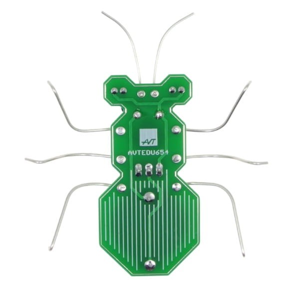 Zestaw AVTEDU to doskonały wybór na pierwszy projekt elektroniczny. Jego montaż jest intuicyjny i szybki, a efekt końcowy czyli poruszający się i świecący owad daje mnóstwo satysfakcji oraz frajdy z własnoręcznego wykonania.