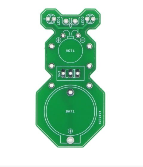 - Zieloną płytkę PCB w kształcie sympatycznego robaczka