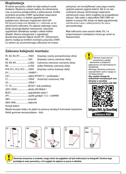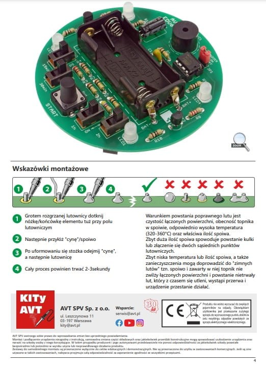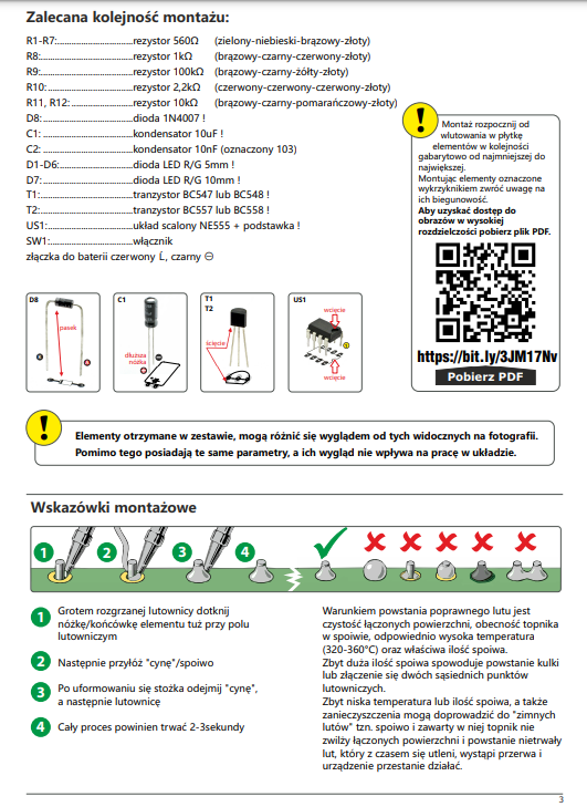 Kompletny zestaw do samodzielnego montażu do nauki lutowania (wymaga lutowania)