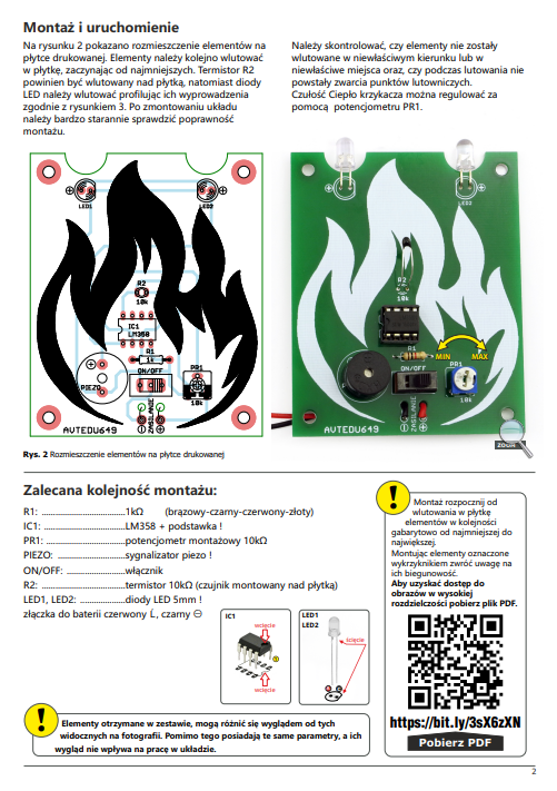 Nasz termiczny alarm, poza umożliwieniem rozwoju umiejętności lutowania, sprawi, że będzie wiadomo kiedy, temperatura przekroczy dopuszczalną, ustawioną wcześniej wartość. Gdy będzie ona zbyt wysoka, czyli wzrośnie ponad ustawiony wcześniej próg, termo-strażak zacznie wydawać z siebie głośny dźwięk, a czerwona i niebieska dioda LED zaczną migać.