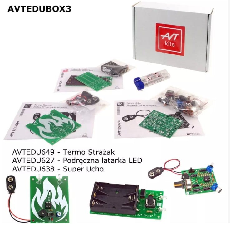 AVTEDUBOX3 Zestaw 3 kitów DIY do nauki lutowania