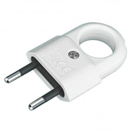 WAC250PL10A-UW Wtyk 250V - standard polski - 2 biegunowy, biały, płaski 10A - na kabel, prosty, 2P, z uchwytem