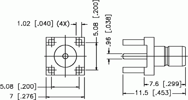 WSMB-DP Wtyk SMB do druku, prosty, częstotliwość do 4GHz