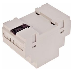 Obudowa z tworzywa, mocowana na szynę. Składa się z dwóch części. Łączenie dolnej i górnej części odbywa się "na zatrzask".