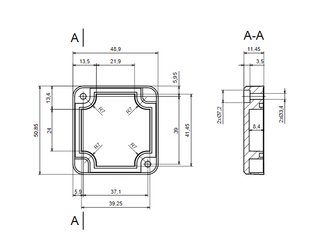 Wyposażone są w rowki pod uszczelki, pogrubione ścianki oraz dwa otwory umożliwiające mocowanie do podłoża (np. ściany) za pomocą wkrętów. Ze względu na hermetyczną uszczelkę instalowaną pomiędzy poszczególnymi elementami, obudowy spełniają swoją rolę w środowisku narażonym na działanie wilgoci (uszczelka nie wchodzi w skład obudowy - należy zamówić ją osobno). Do dolnej części obudowy istnieje możliwość przymocowania płytki PCB za pomocą specjalnych kołków montażowych.