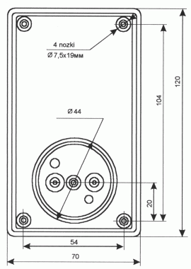- wtyk 230V z gniazdem na bolec ochronny, mocowane na dwa wkręty