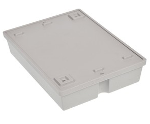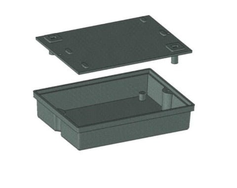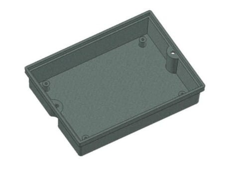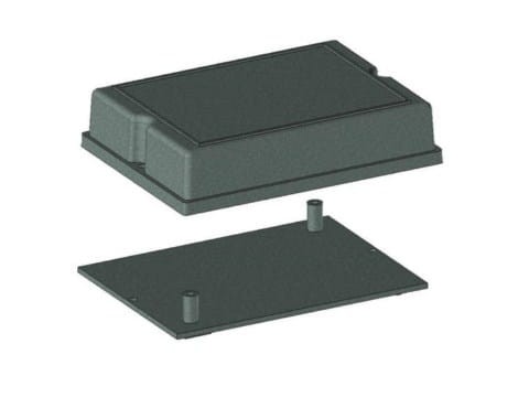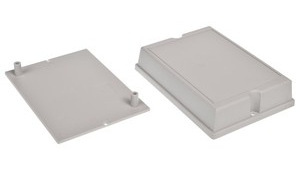 Obudowa z tworzywa mocowana na ścianę, składa się z dwóch części. Łączenie dolnej i górnej części odbywa się przy pomocy dwóch wkrętów w narożnikach obudowy.