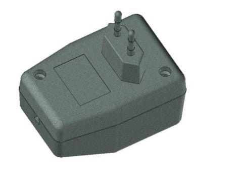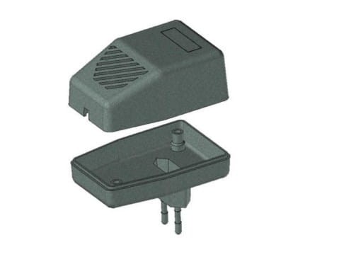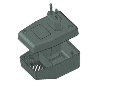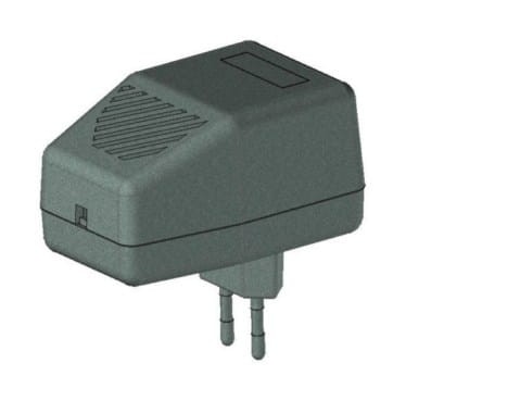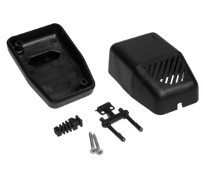 Obudowa z tworzywa zasilacza. Składa się z dwóch części. Łączenie dolnej i górnej części odbywa się przy pomocy dwóch wkrętów w narożnikach obudowy. Obudowa posiada otwory wentylacyjne oraz otwór na wprowadzenie przewodu. Pokrywa obudowy dodatkowo posiada na froncie małe prostokątne zagłębienie które doskonale nadaje się do umieszczenia etykiety. Spód obudowy również posiada niewielkie zagłębienie pod etykietę.