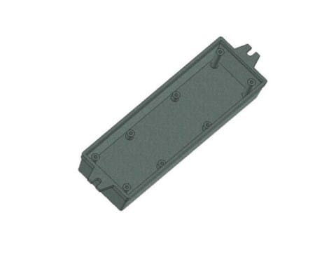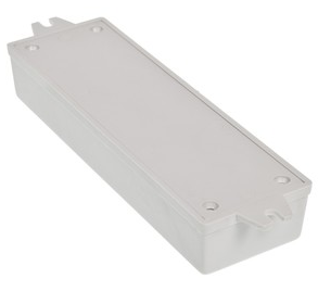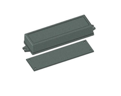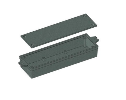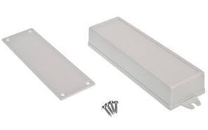 Obudowa z tworzywa pełna z mocowaniem. Składa się z dwóch części. Łączenie dolnej i górnej części odbywa się przy pomocy czterech wkrętów w narożnikach obudowy. Do górnej części obudowy istnieje możliwość przymocowania płytki PCB za pomocą specjalnych kołków. Górna część obudowy posiada na krótszej krawędzi "uszy" umożliwiające mocowanie do podłoża.