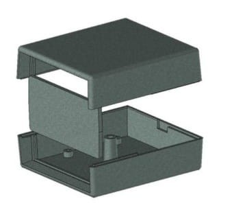 Obudowa z tworzywa pełna z panelem przednim. Składa się z trzech części. Łączenie dolnej i górnej części odbywa się przy pomocy jednego wkrętu w środku obudowy. Do dolnej i górnej części obudowy istnieje możliwość przymocowania płytki PCB za pomocą specjalnych kołków. W obudowie mieści się płytka o maksymalnych wymiarach 58 x 59[mm].