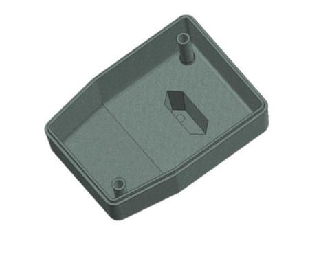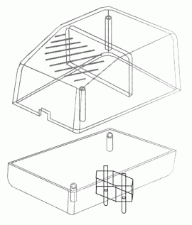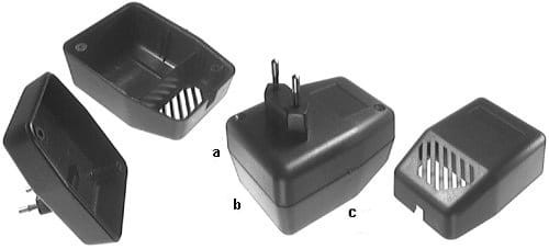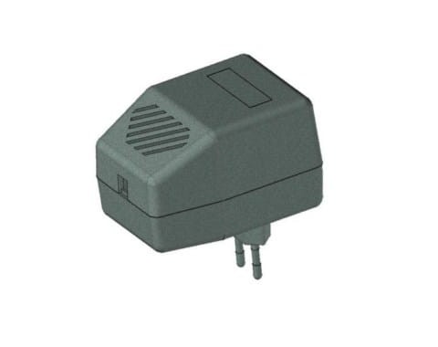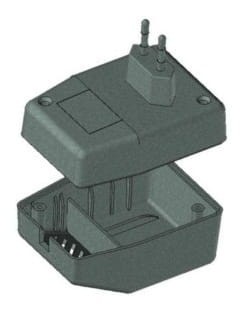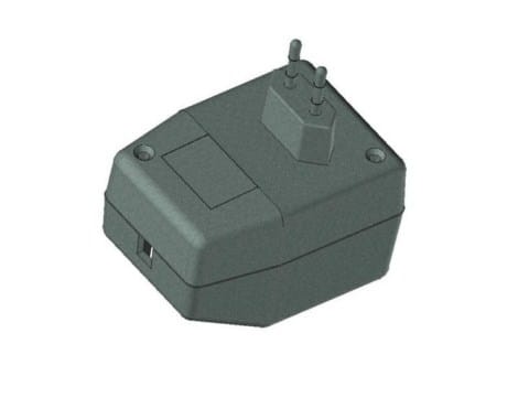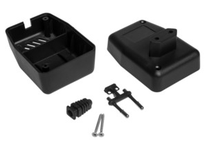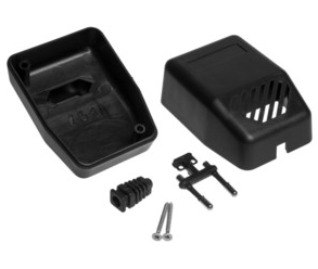 Obudowa z tworzywa zasilacza. Składa się z dwóch części. Łączenie dolnej i górnej części odbywa się przy pomocy dwóch wkrętów w narożnikach obudowy. Obudowa posiada otwory wentylacyjne oraz otwór na wprowadzenie przewodu. Pokrywa obudowy dodatkowo posiada na froncie małe prostokątne zagłębienie które doskonale nadaje się do umieszczenia etykiety. Spód obudowy również posiada niewielkie zagłębienie pod etykietę.