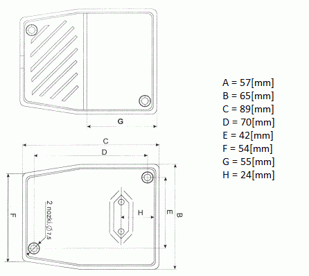 - Wymiary: 89 x 65 x 57 mm [długość x szerokość x wysokość]