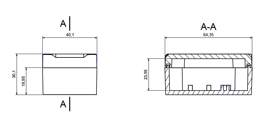 - Wymiary: 64 x 40 x 30 mm [długość x szerokość x wysokość]