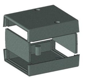 Obudowa z tworzywa pełna z panelem przednim i tylnym. Składa się z czterech części. Łączenie dolnej i górnej części odbywa się przy pomocy dwóch wkrętów. Do dolnej części obudowy istnieje możliwość przymocowania płytki PCB za pomocą specjalnych kołków. Pokrywa obudowy posiada na froncie prostokątne zagłębienie o wymiarach: 51 x 57[mm], które doskonale nadaje się do umieszczenia np. klawiatury membranowej, naklejki lub wyświetlacza.