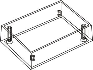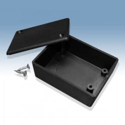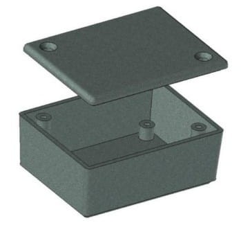 Obudowa z tworzywa uniwersalna pełna. Składa się z dwóch części. Łączenie dolnej i górnej części odbywa się przy pomocy dwóch wkrętów w narożnikach obudowy.Do górnej części obudowy istnieje możliwość przymocowania płytki PCB za pomocą specjalnych kołków.