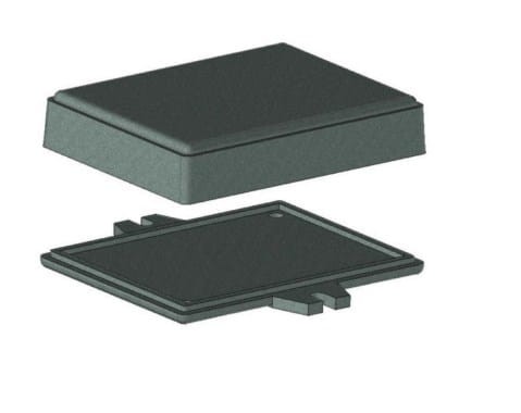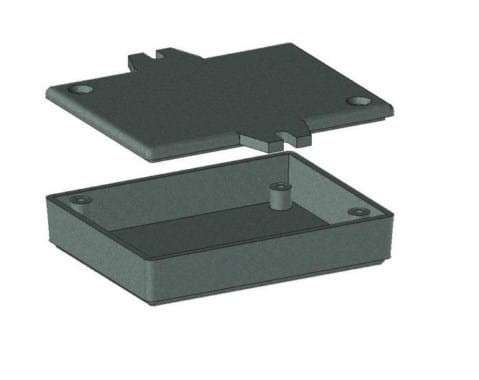Obudowa z tworzywa pełna z mocowaniem. Składa się z dwóch części. Łączenie dolnej i górnej części odbywa się przy pomocy dwóch wkrętów w narożnikach obudowy. Dolna część obudowy na dłuższej krawędzi posiada "uszy" umożliwiające mocowanie do podłoża. Do górnej części obudowy istnieje możliwość przymocowania płytki PCB za pomocą specjalnych kołków montażowych. W obudowie mieści się płytka o maksymalnych wymiarach 53 x 70[mm].
