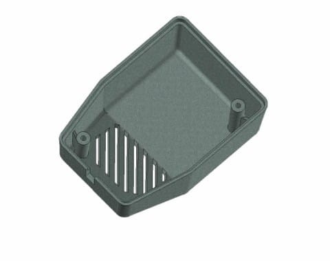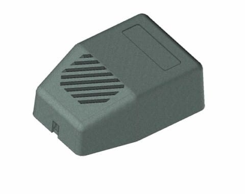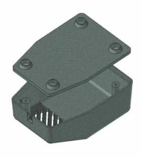 Obudowa z tworzywa zasilacza. Składa się z dwóch części. Łączenie dolnej i górnej części odbywa się przy pomocy dwóch wkrętów w narożnikach obudowy. Obudowa posiada otwory wentylacyjne oraz otwór na wprowadzenie przewodu. Pokrywa obudowy dodatkowo posiada na froncie małe prostokątne zagłębienie o wymiarach 12x40[mm], które doskonale nadaje się do umieszczenia etykiety.