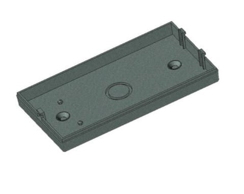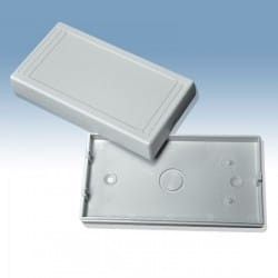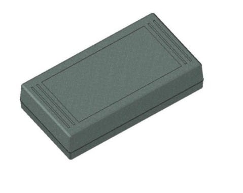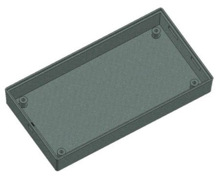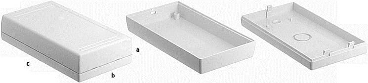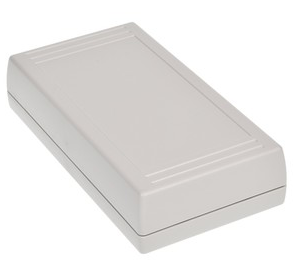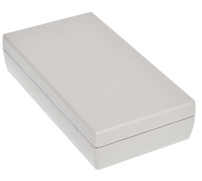 Obudowa z tworzywa uniwersalna pełna. Składa się z dwóch części. Łączenie dolnej i górnej części odbywa się na zatrzask (do zamknięcia obudowy nie są więc wymagane śruby). Do dolnej części obudowy istnieje możliwość przymocowania płytki PCB za pomocą specjalnych kołków montażowych. Pokrywa obudowy posiada na froncie prostokątne zagłębienie o wymiarach: 51 x 100[mm], które doskonale nadaje się do umieszczenia np. klawiatury membranowej, naklejki lub wyświetlacza. Obudowa nie posiada otworów wentylacyjnych.