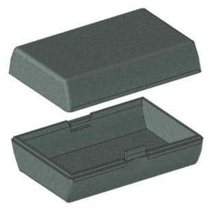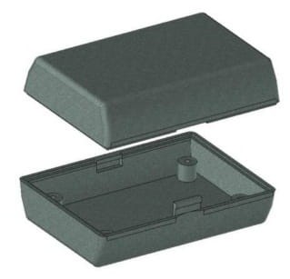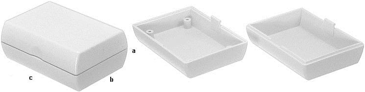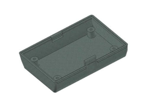 Obudowa z tworzywa uniwersalna pełna. Składa się z dwóch części. Łączenie dolnej i górnej części odbywa się na zatrzask (do zamknięcia obudowy nie są więc wymagane śruby). Do dolnej części obudowy istnieje możliwość przymocowania płytki PCB za pomocą specjalnych kołków montażowych. Obudowa nie posiada otworów wentylacyjnych.