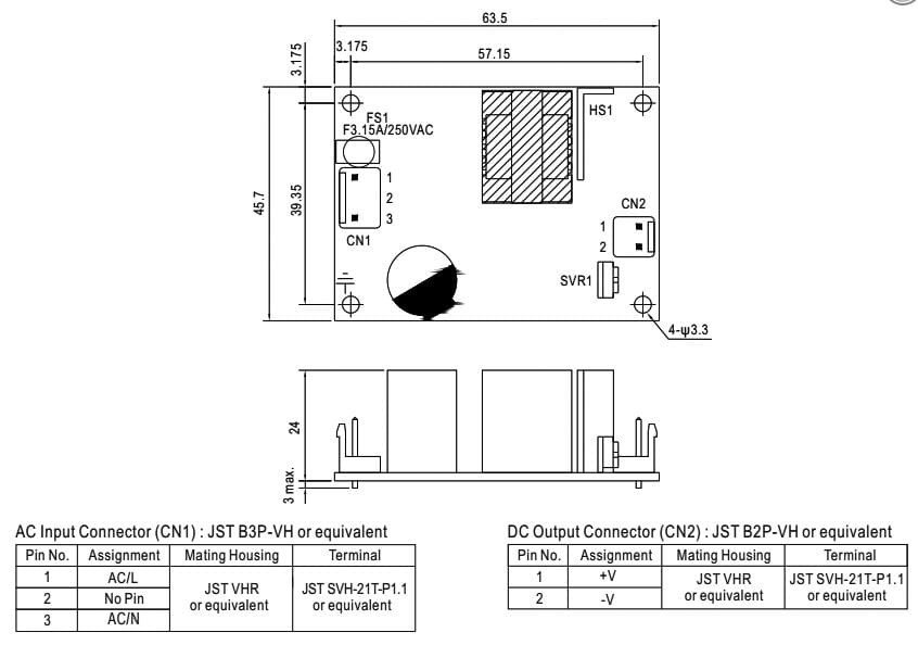 ZSIOPEN7.5/2 Zasilacz impulsowy modułowy typu open 7.5V/2A [OUT: 7.13 ~ 8.25V]