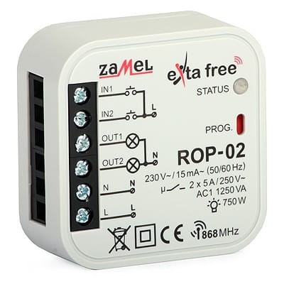 ZSZ-ROP02 Radiowy odbiornik dopuszkowy 2-kanałowy ExtaFree - zasilanie 230V